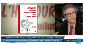 « Première Guerre mondiale: l’humour des poilus canadiens-français » : entrevue avec Bernard Andrès à l’émission 64 minutes le monde en français, TV5MONDE, 9 novembre 2018.