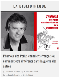 « L’humour des Poilus canadiens-français ou comment être différents dans la guerre des autres » , entrevue de Bernard Andrès avec Sébastien Vincent,dans Le Québec et les guerres mondiales, 8 décembre 2018.