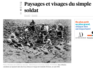 « Paysages et visages du simple soldat » recension/entrevue de Jean-François Nadeau, Le Devoir, 10 novembre 2018.